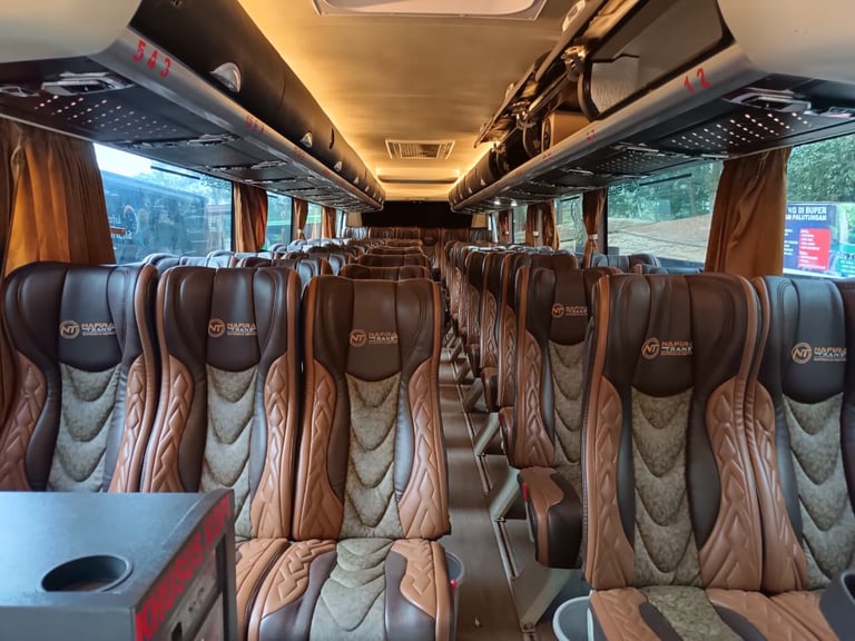 Bus dengan kapasitas besar, bersih, dan dilengkapi AC untuk kenyamanan perjalanan